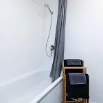 For added convenience, a separate toilet and a shower are available at the apartment. Furthermore, you can enjoy a hairdryer and bath sheets provided in the bathroom.